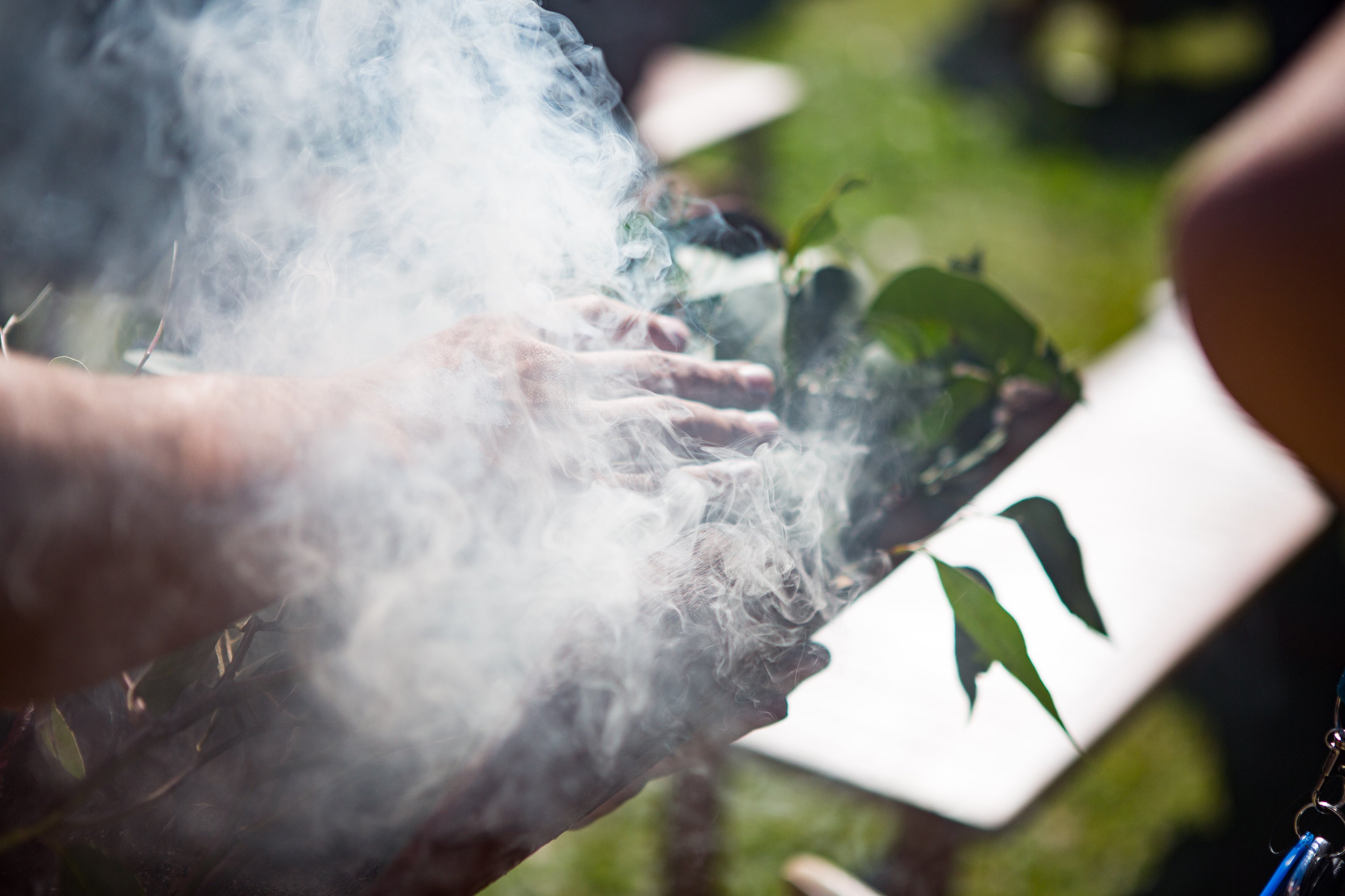Whilst conducting a smoking ceremony, the participants walk through the smoke washing the smoke over themselves. This provides a safe passage and cleansing. Smoking ceremonies can also be conducted to cleanse areas or places.